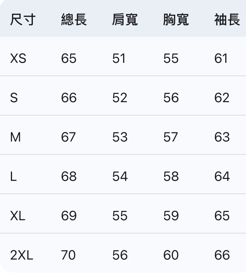 2XL:建議身高 178–185 cm/建議體重 75–85 kg