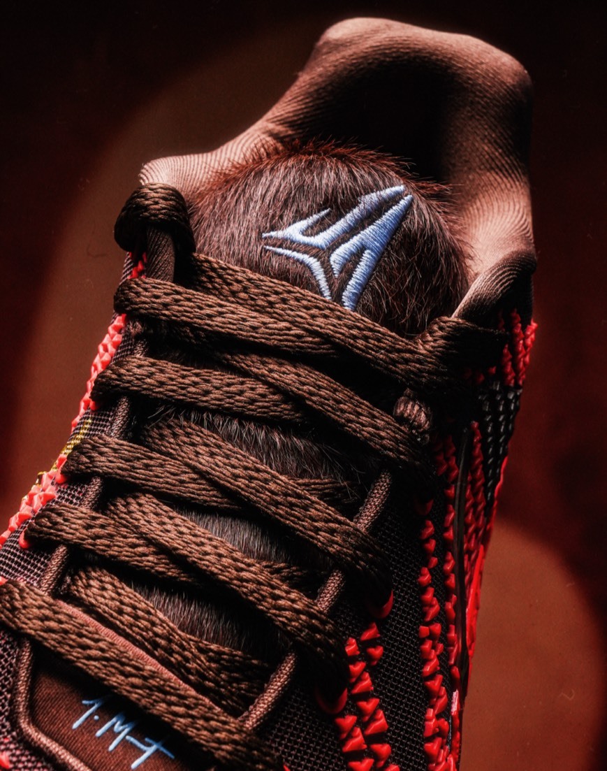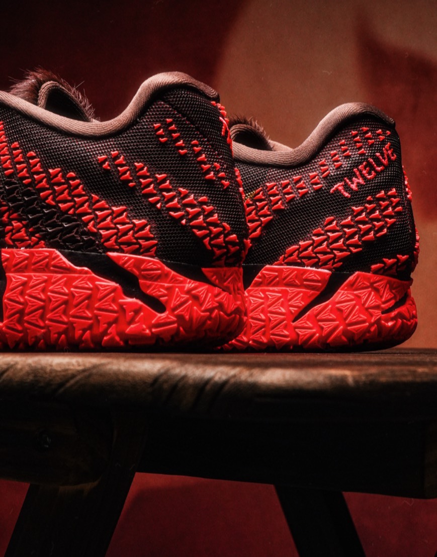 深咖啡 × 血紅編織鞋面